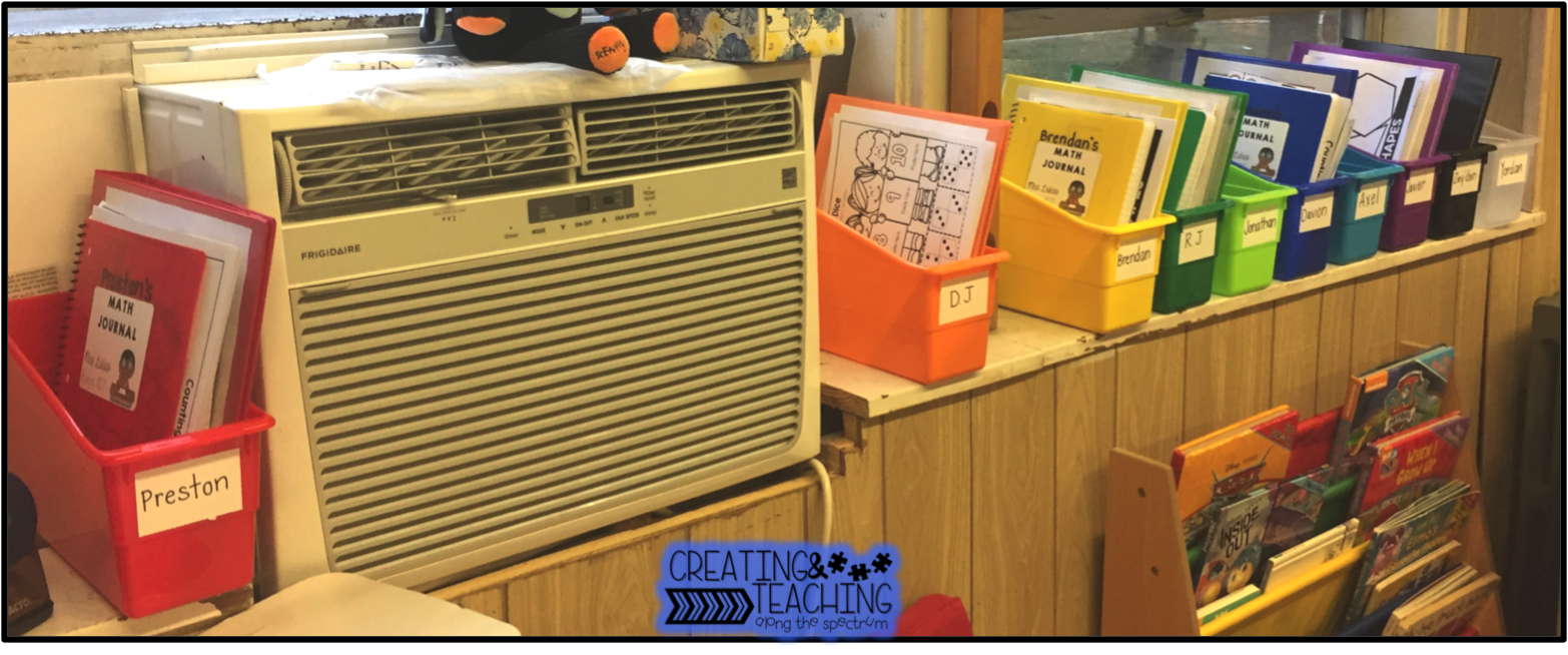 I also keep any IEP documents in their bins, the reader books they are working on, or are finished with and any packets we might be working on (i.e. Math Shape Journals).